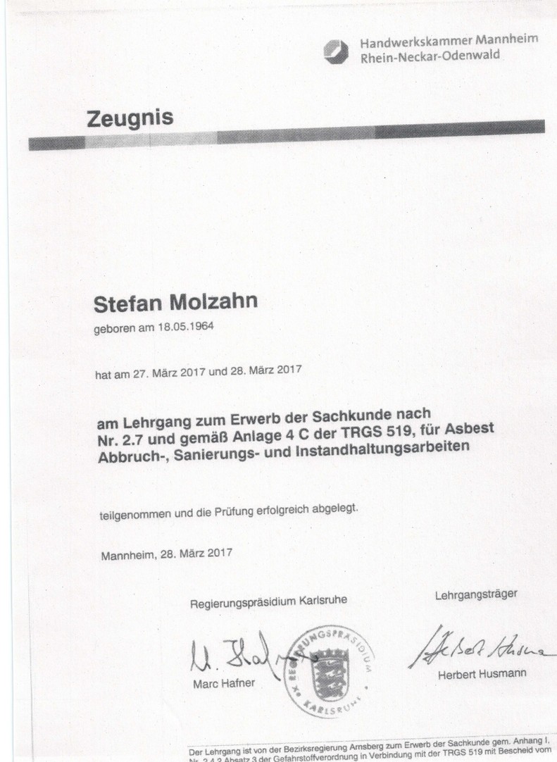 Asbestschein - Interbau Dächer UG